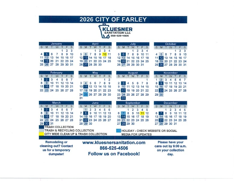 Kluesner Sanitation 2026 Schedule